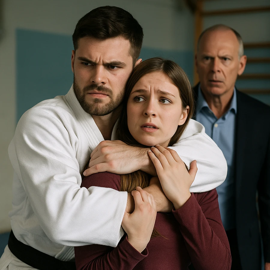 Durante una práctica, el instructor la sujetó con fuerza, como si quisiera demostrar su dominio absoluto. La tomó por detrás, cerrando su brazo en torno a su cuello. La tensión en el ambiente creció de inmediato. Nadie sabía si se trataba de una demostración o de algo que había cruzado el límite.