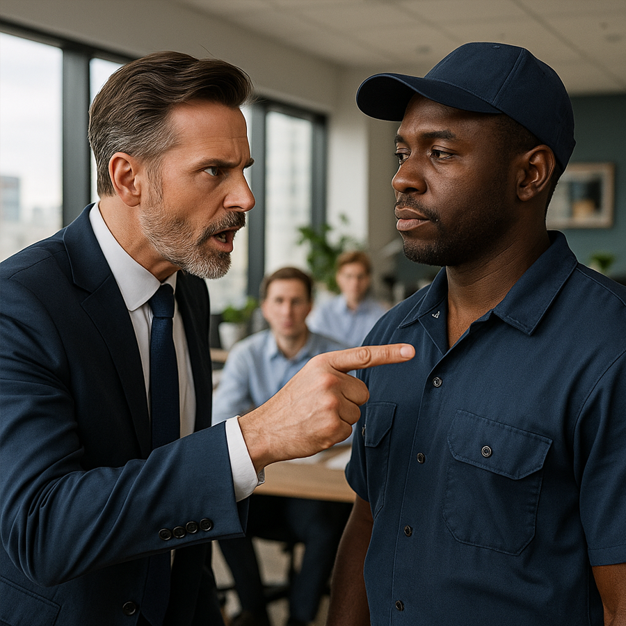 En una mañana cualquiera, en una de las oficinas más lujosas de Nueva York, se desarrolló una escena que dejó a todos los empleados en silencio. Un arrogante CEO, acostumbrado a que todos se inclinaran ante él, gritó con desprecio a un humilde plomero afroamericano que había sido llamado para reparar una simple fuga de agua.