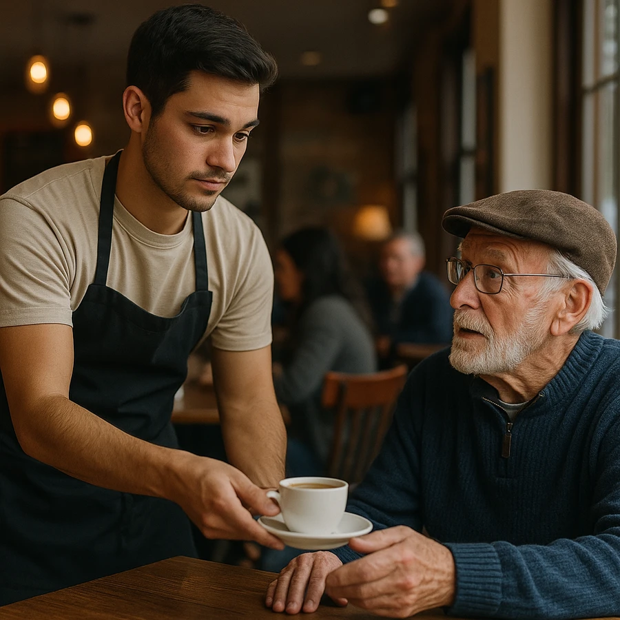 El camarero pobre pagó un café a un anciano… sin saber quién era