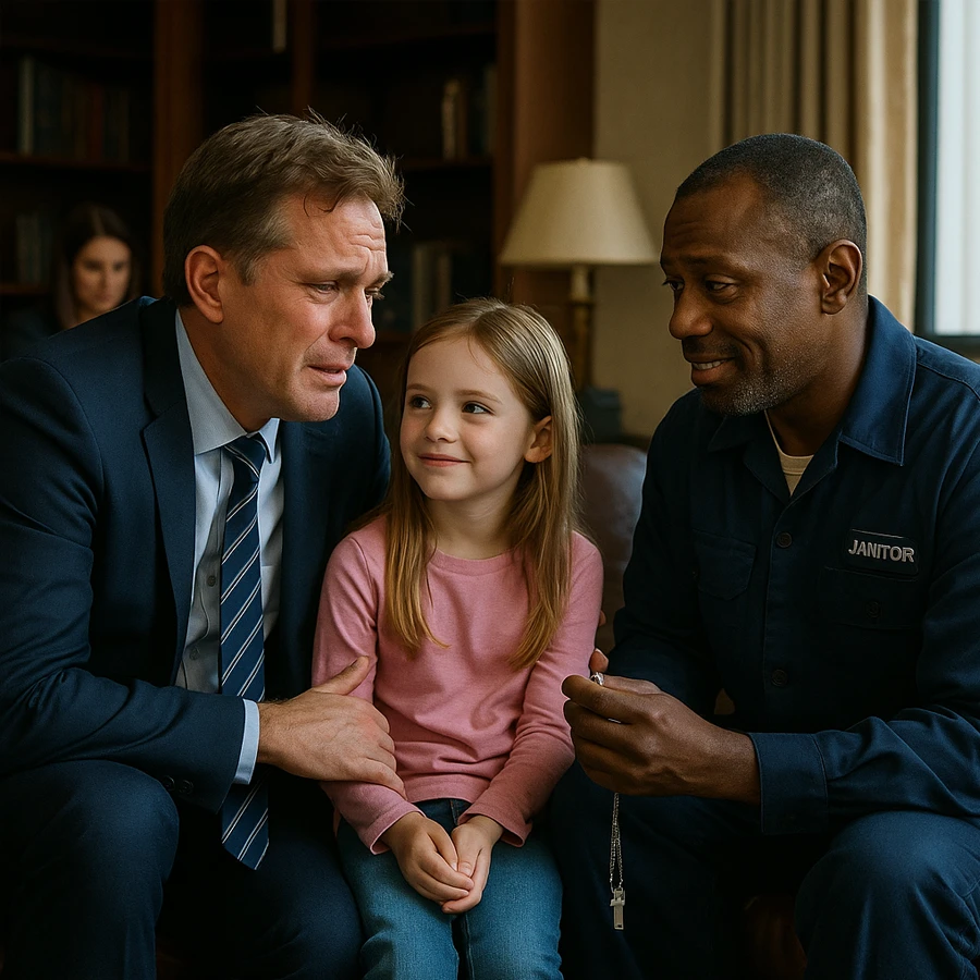 Las oficinas de Marshall Enterprises, una de las compañías más poderosas del país, siempre habían sido símbolo de lujo y perfección. Sin embargo, detrás de sus muros de cristal se escondía una tragedia personal que ni el dinero ni los mejores especialistas habían podido resolver. La hija del propio CEO había perdido la capacidad de hablar tras un accidente traumático. Y cuando él, entre lágrimas, prometió entregar “todo lo que tenía” a quien lograra devolverle la voz, jamás imaginó que la respuesta vendría de alguien invisible para todos: el conserje.