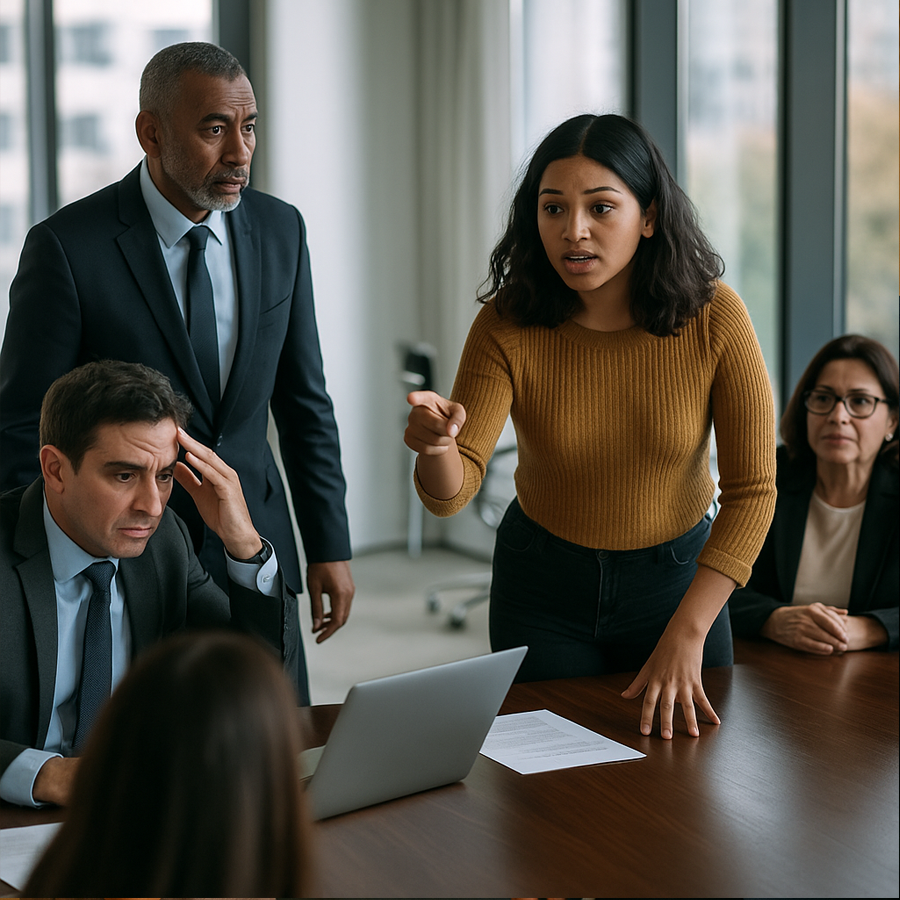 A los pocos minutos, los inversionistas entraron. Eran tres hombres elegantes, sonrientes pero impacientes. Luis intentó hablar en inglés, pero ellos respondieron en francés, confundidos. La tensión crecía.