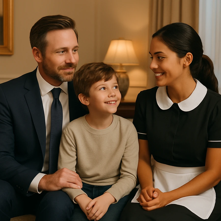 En su mansión trabajaba Elena Ramírez, una joven empleada doméstica que había llegado desde otro país en busca de mejores oportunidades. Elena, sencilla pero inteligente, se había ganado el cariño de Noah con juegos, cuentos y una ternura que llenaba la casa de calidez.