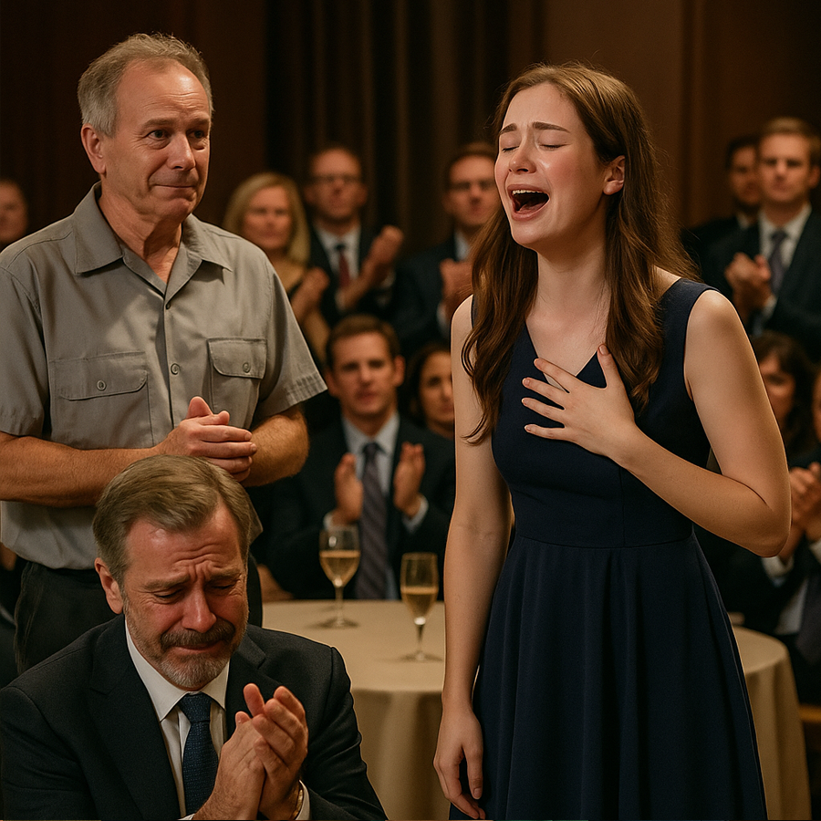 El CEO, en primera fila, no podía creerlo. Lágrimas caían por su rostro mientras su hija cantaba frente a todos por primera vez en su vida.