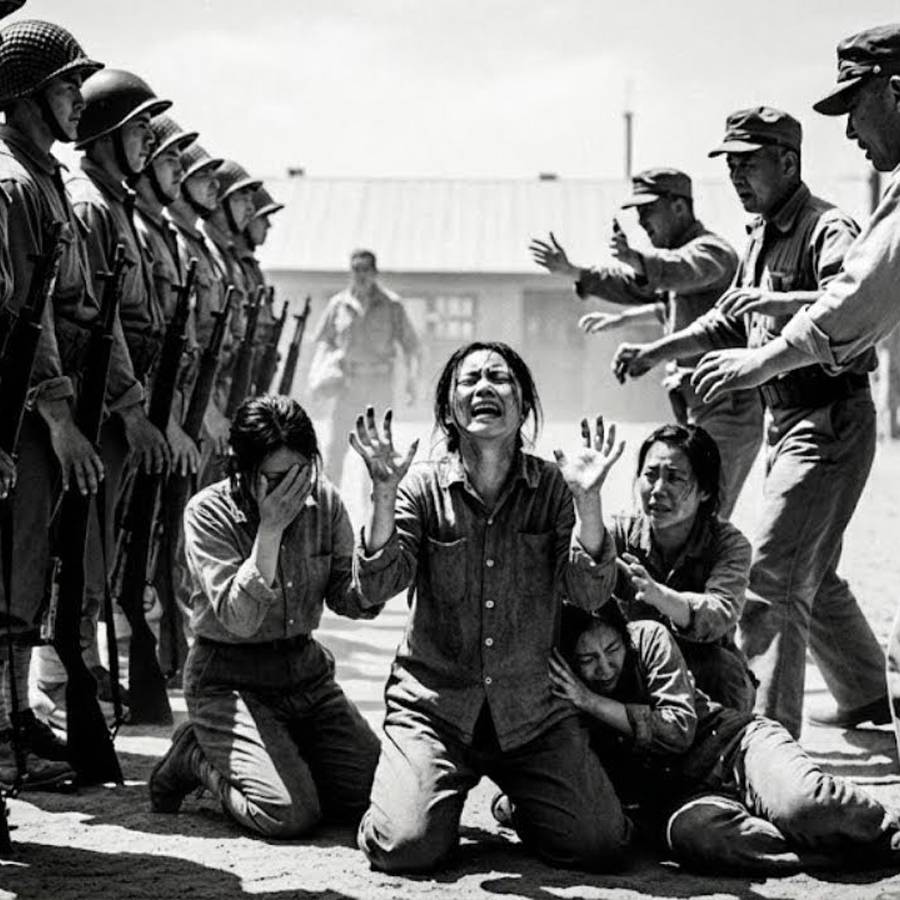 Esta narración ficticia reconstruye uno de esos episodios: el día en que un grupo de prisioneras japonesas, exhaustas y emocionalmente frágiles, entraron en pánico al ver acercarse a antiguos comandantes de su propio ejército. La reacción de los soldados estadounidenses que las custodiaban —bloqueando el paso y creando una barrera humana— se convirtió en un acto inesperado de protección que cambió la dinámica de todo el campamento.