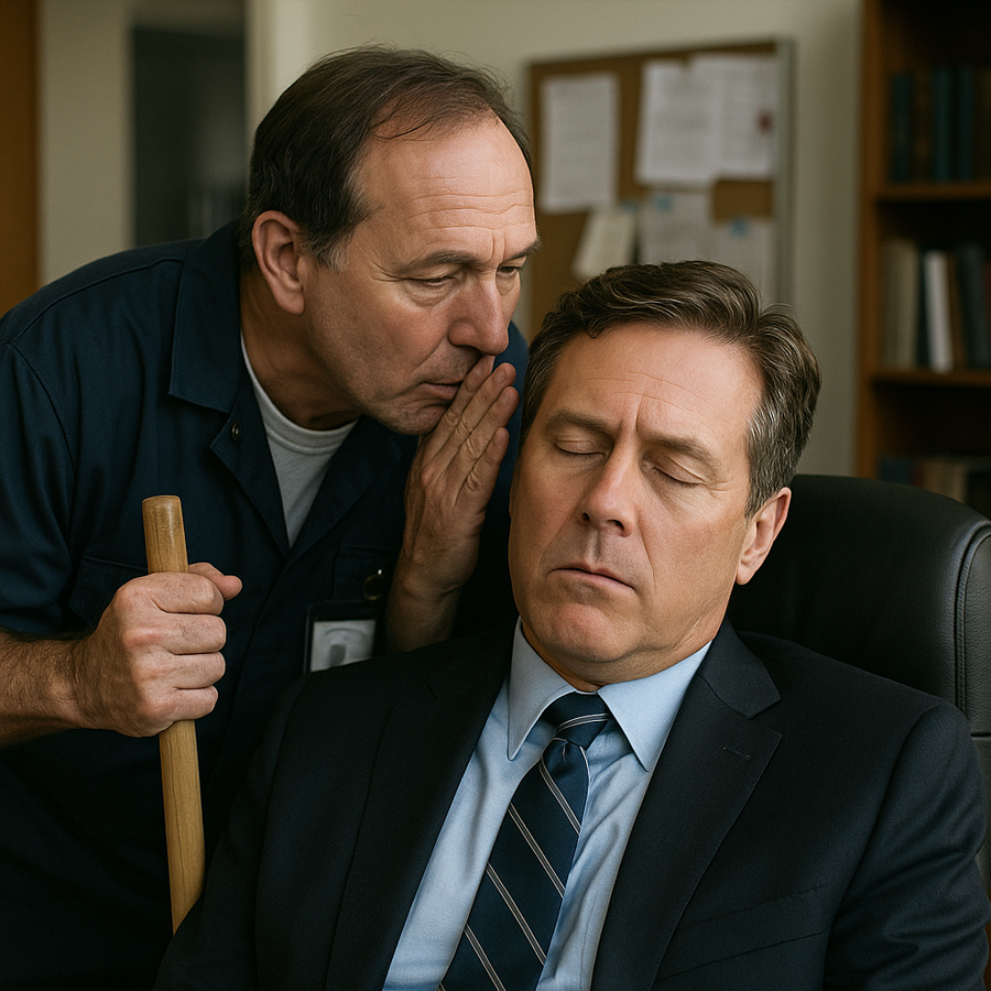 “El director fingió quedarse dormido para poner a prueba la honestidad del conserje, pero cuando el hombre se acercó y le susurró algo al oído, lo que escuchó lo dejó helado y cambió su percepción de la vida para siempre.”