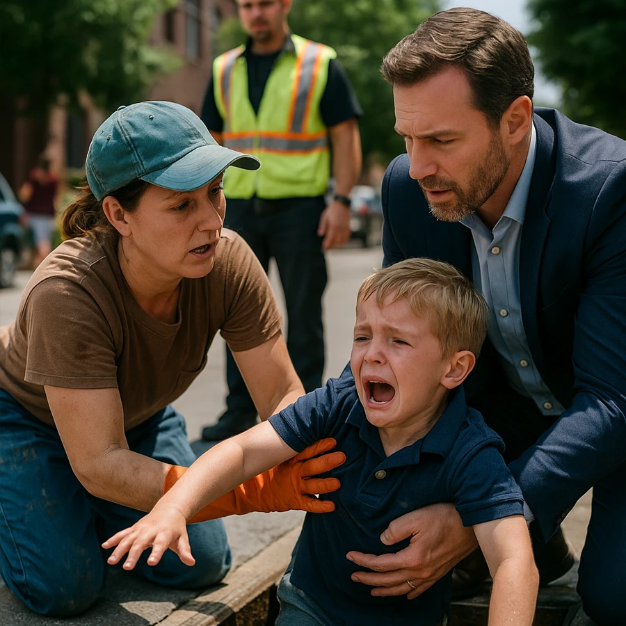 Las calles de la ciudad estaban llenas de transeúntes, guardias de seguridad y curiosos, pero cuando un niño cayó en una alcantarilla abierta, todos se quedaron paralizados. Lo que parecía una tragedia inevitable se convirtió en un acto heroico protagonizado por alguien que nadie esperaba: una simple trabajadora de limpieza.