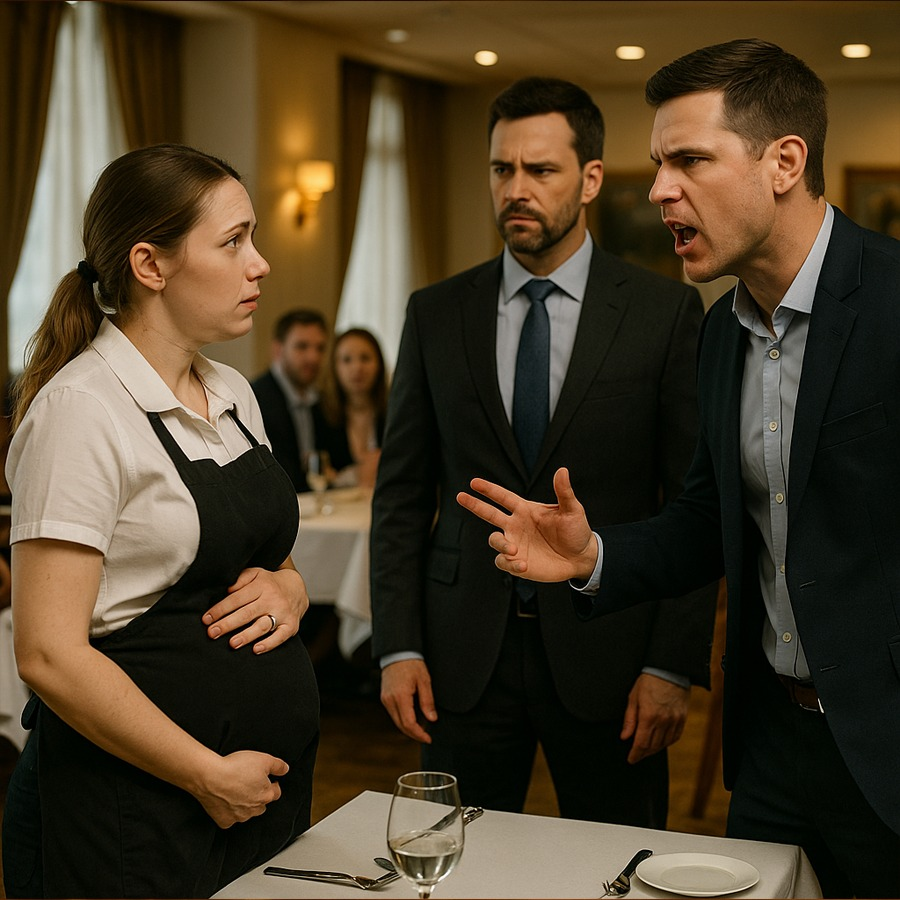“El hijo del millonario la humilló frente a todos, riéndose de su uniforme y de su embarazo. No sabía que la camarera que despreciaba estaba casada con alguien que podía destruir su apellido con una sola palabra. En segundos, el restaurante se convirtió en un campo de vergüenza, cámaras encendidas, y un escándalo que demostraría que el dinero jamás compra dignidad.”