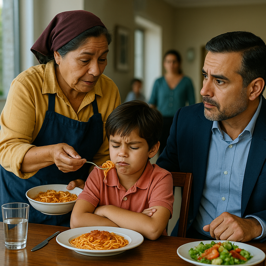 Clara no respondió. Solo se acercó a Sebastián, que estaba sentado frente a un plato intacto de puré y verduras.