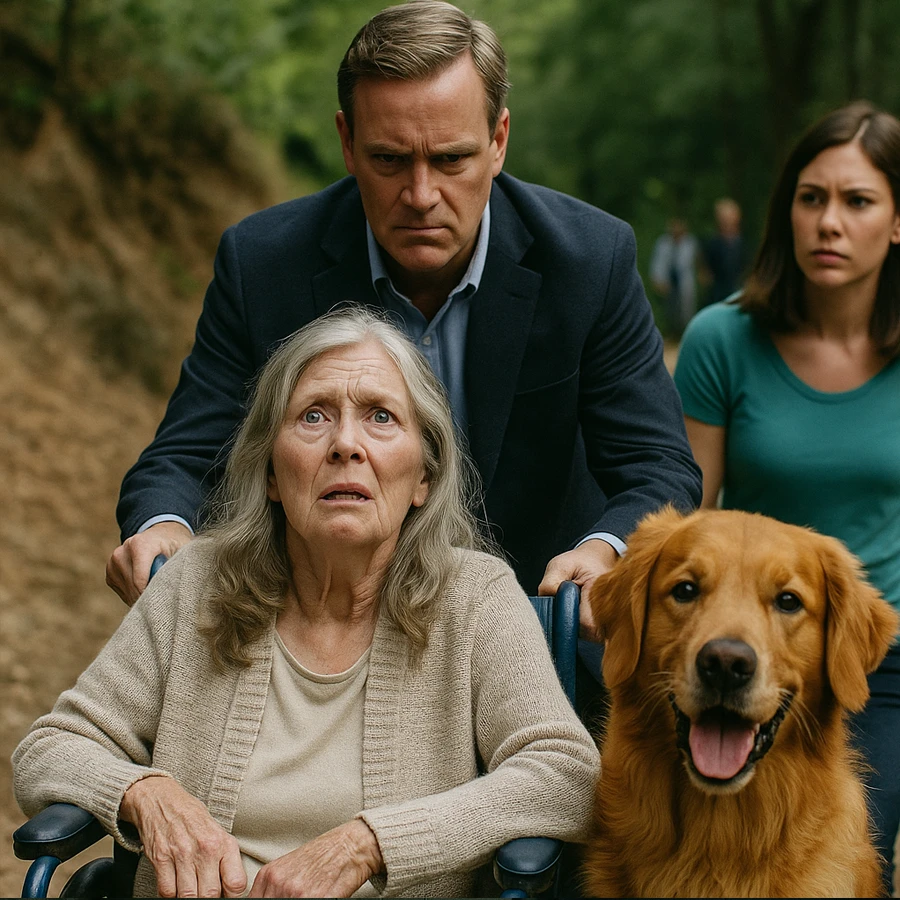 El hijo rico empujó a su madre paralizada por un acantilado… pero olvidó al perro