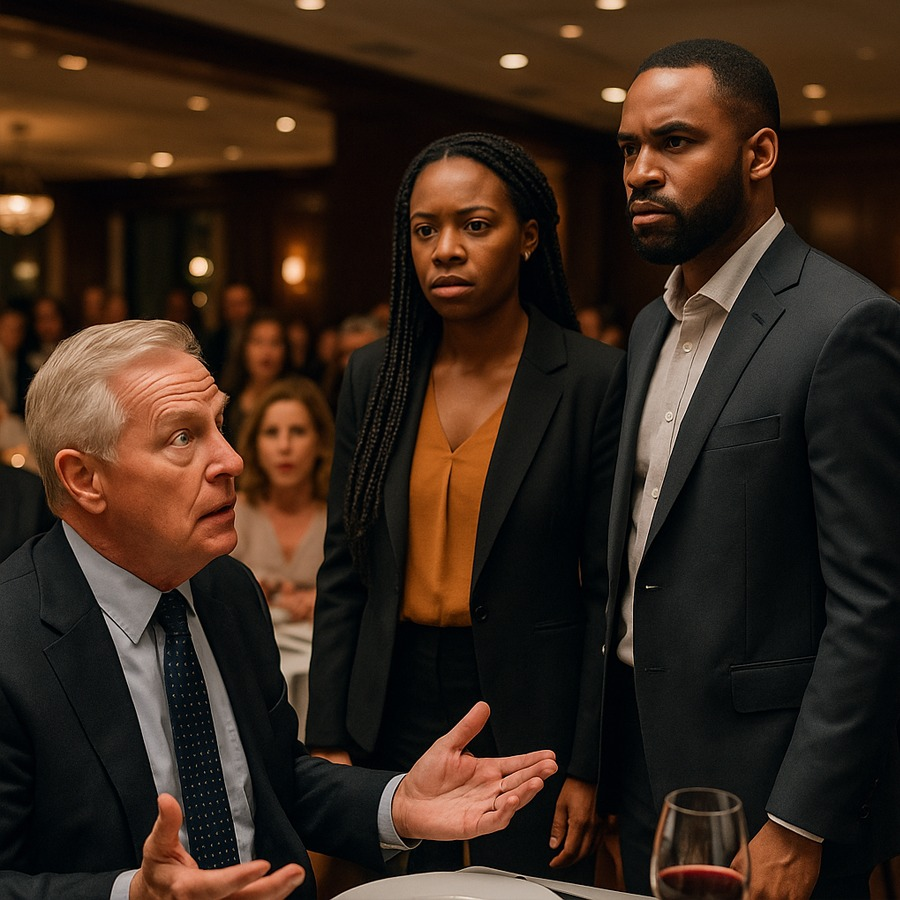 Frente a la mesa principal, se encontraba una pareja invitada de honor: Elijah y Naomi Brooks, dos jóvenes empresarios afrodescendientes que habían revolucionado el mercado tecnológico con una startup de inteligencia financiera. Su compañía, EquiSense, era la pieza clave del acuerdo que Langford estaba a punto de comprar. Todos esperaban la foto, los aplausos, el brindis.