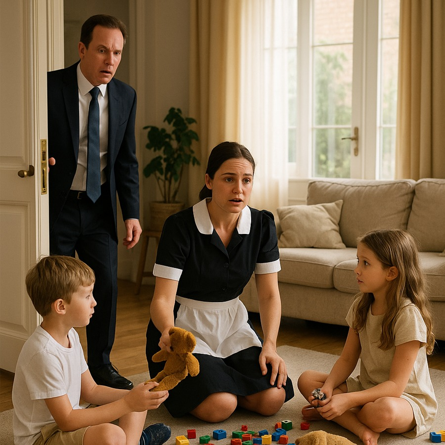 El millonario creía que su hogar era un refugio perfecto, protegido por cámaras, muros y empleados de confianza. Pero una tarde, mientras sus hijos jugaban en el jardín, la niñera hizo algo que nadie esperaba. Los niños reían, sin entender que participaban en un juego peligroso, un juego que no debía existir. Cuando el padre vio las imágenes de las cámaras, se quedó helado: su mundo entero se tambaleó. La mujer que había cuidado a sus hijos durante años escondía un secreto tan oscuro que cambiaría para siempre la historia de aquella familia.