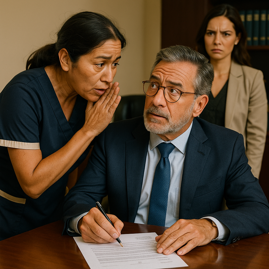 “El millonario estaba a punto de firmar el contrato más importante de su vida, rodeado de abogados y socios ansiosos. Pero justo antes de poner su firma, una mujer de limpieza se le acercó y le susurró: ‘¡No firme eso!’. Lo que ocurrió después dejó a todos sin palabras. Una historia real de traición, intuición y humanidad que demuestra que la verdad, a veces, proviene de quien menos imaginas.”