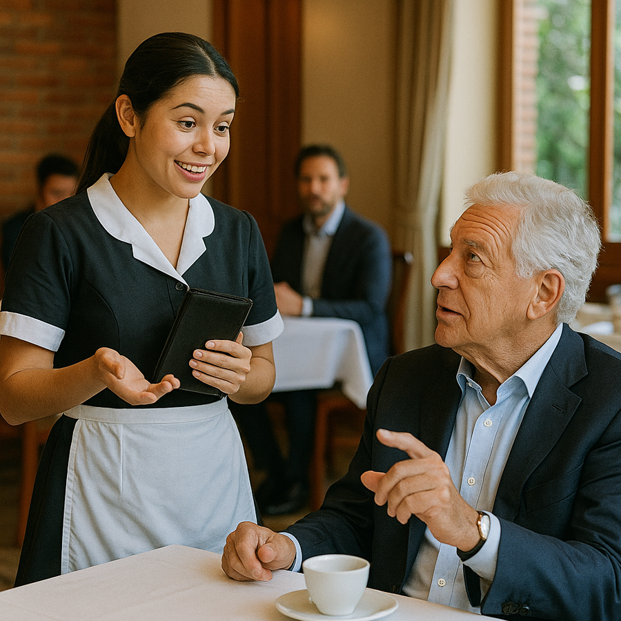 (Lamento si el servicio no está a la altura de usted, señor. Pero a veces, la paciencia revela más clase que el dinero.)