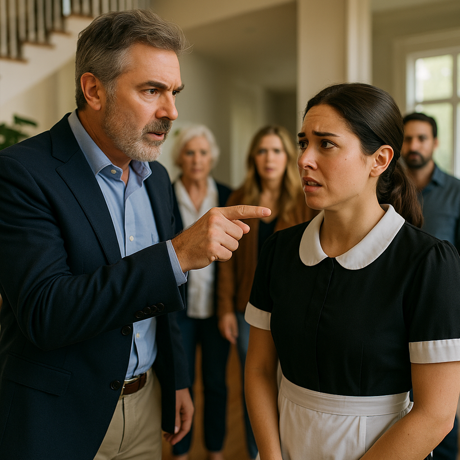 En el centro del salón, Lucía, una joven de mirada asustada y uniforme impecable, temblaba entre los murmullos.