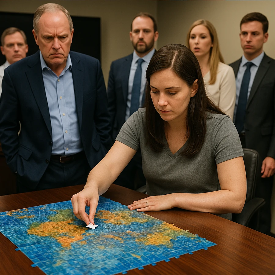La sala quedó en silencio. Nadie se atrevía a intentarlo. Todos sabían que el reto era prácticamente imposible: el rompecabezas era de una escena abstracta, casi indescifrable. Los directivos intercambiaron miradas nerviosas; otros bajaron la cabeza. Para el millonario, era una oportunidad perfecta para confirmar su teoría de que “sin dinero y poder, nadie puede vencer lo imposible”.