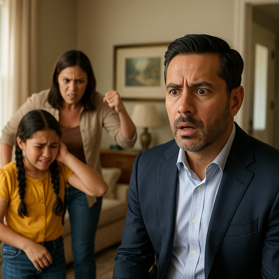 “El millonario llegó temprano a casa y descubrió a su madrastra levantando la mano contra su hija… lo que hizo después dejó a todos en silencio: una historia de justicia, redención y un giro inesperado que nadie vio venir”