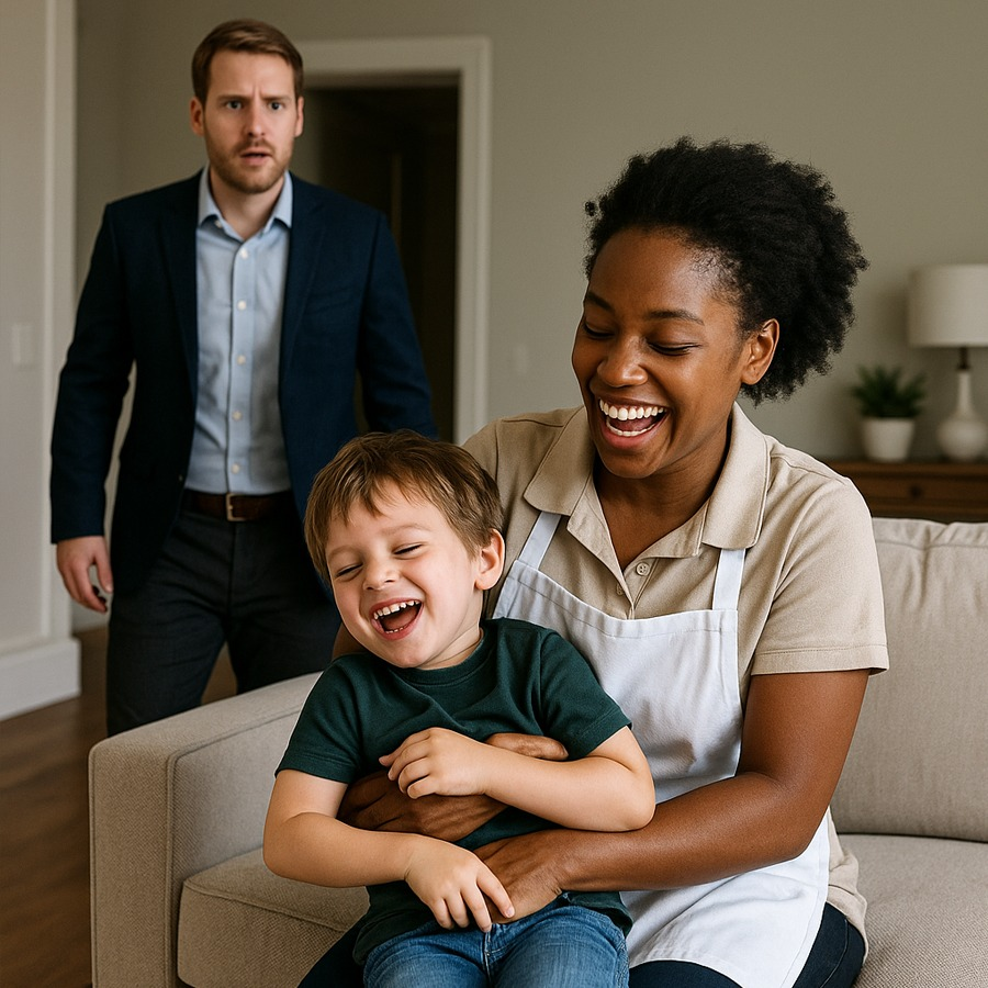 Allí, bajo la tenue luz del ventanal, estaba Clara, su sirvienta, con el pequeño Nicolás, su hijo de apenas dos años, en brazos.