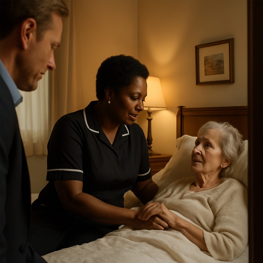 Esa noche, se quedó junto a su madre hasta el amanecer. Le contó historias, la cubrió con mantas, la escuchó respirar. Pero al despuntar el sol, Eleanor Grant cerró los ojos para siempre, con una expresión serena, como quien por fin encuentra descanso.
