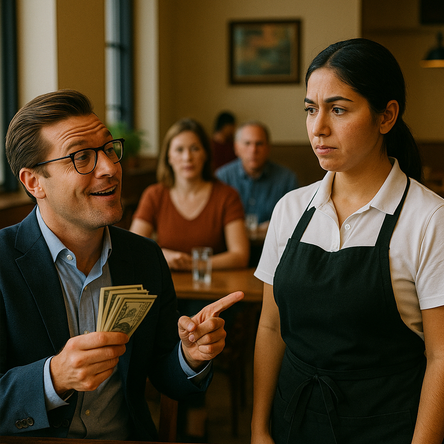 “El millonario que ofreció mil dólares a una mesera mexicana solo por atenderlo en inglés… jamás imaginó que su burla se convertiría en una lección pública, un silencio incómodo y una respuesta tan poderosa que hizo temblar su reputación, su orgullo y su manera de ver a la gente humilde para siempre.”
