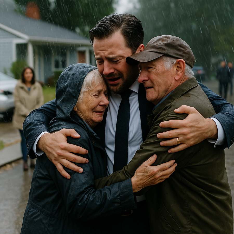 Los tres permanecieron bajo la lluvia, en silencio, mientras el agua lavaba las heridas que el orgullo había mantenido abiertas tanto tiempo.