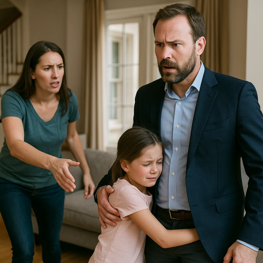 Natalia quedó paralizada. Valentina corrió hacia su padre, aferrándose a él con desesperación.