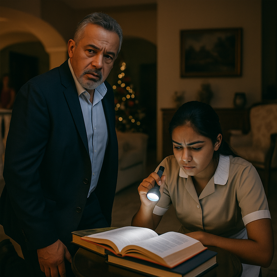 La casa, como siempre, estaba impecable. Los empleados se habían retirado hacía horas. Pero desde el fondo del pasillo se filtraba una luz tenue, casi imperceptible. Intrigado, el hombre siguió el resplandor hasta la biblioteca. Lo que vio allí lo dejó completamente desconcertado.
