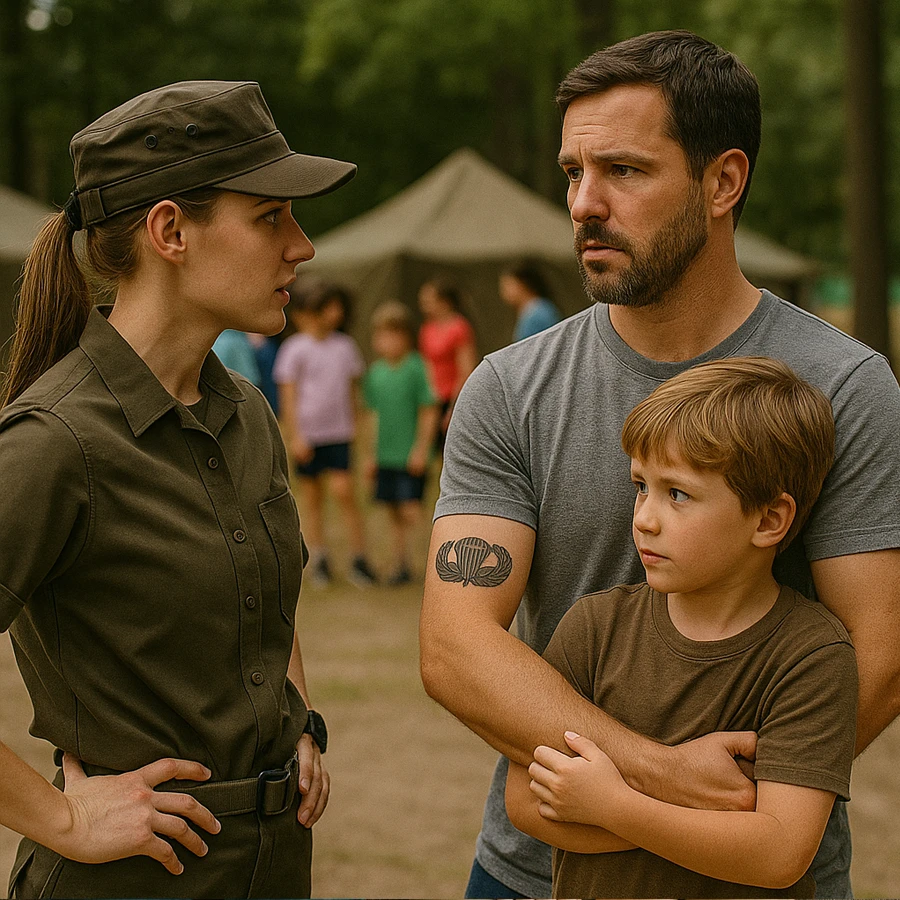 El tercer día del campamento, mientras los voluntarios organizaban actividades físicas, una oficial del ejército llamada la teniente Sarah Collins se acercó a supervisar. Había sido invitada como parte de un programa de disciplina y liderazgo para los niños. Vestida con uniforme impecable, mirada aguda y postura firme, Sarah irradiaba autoridad. Nadie se atrevía a cuestionar su presencia.