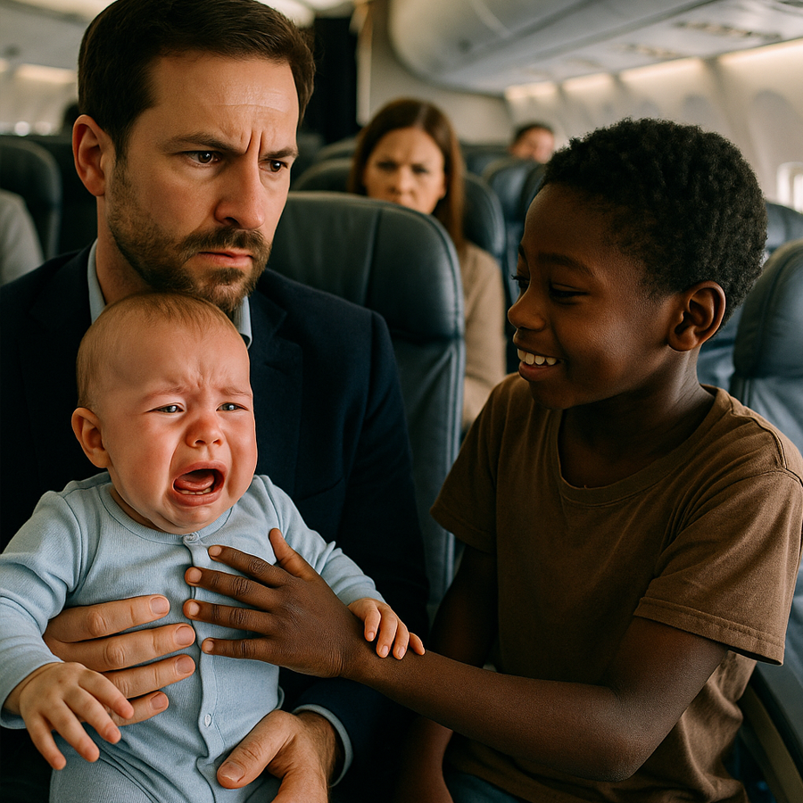 “El vuelo privado de un multimillonario se volvió un caos cuando su bebé comenzó a llorar sin control. Ningún asistente ni doctor a bordo pudo calmarlo, hasta que un niño humilde, sentado en la clase económica, se acercó y hizo algo impensable. Lo que ocurrió después dejó al empresario y a todos los pasajeros en silencio. Una historia real que muestra cómo la bondad y la inocencia pueden más que todo el dinero del mundo.”