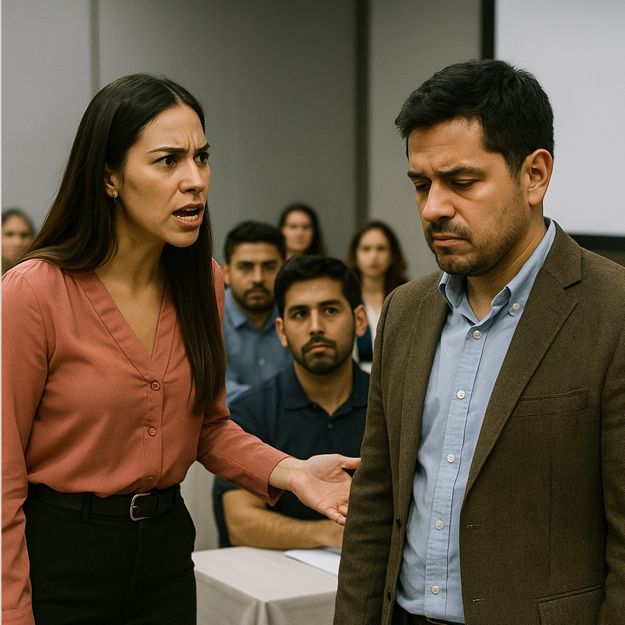 En una sala de juntas climatizada y llena de rostros que aparentaban calma, se produjo una escena que nadie olvidaría pronto. El público, compuesto por empleados, clientes y socios, se había reunido para la presentación anual que marcaría el rumbo de la compañía. Allí, bajo la luz fría de los proyectores, ella —Lucía— hizo un gesto que para él fue el inicio de todo: lo dejó en evidencia con una frase afilada, con una sonrisa pública diseñada para ridiculizar.