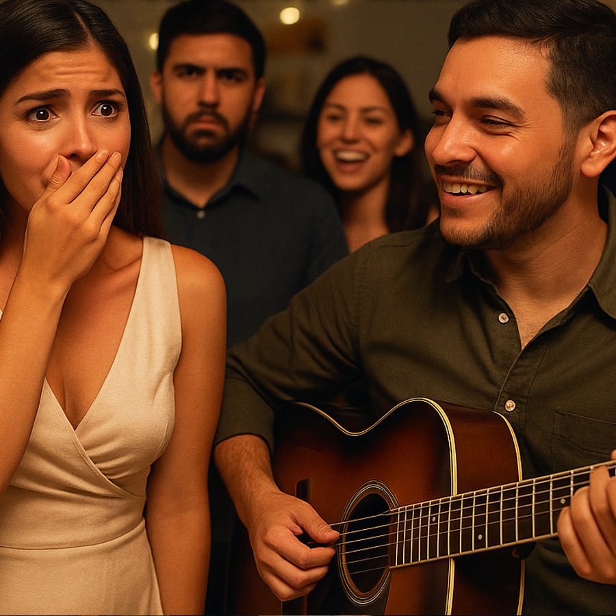 Vestía un traje elegante, pero conservaba su guitarra al hombro. Cuando entró al salón, las conversaciones se detuvieron. Todos lo reconocieron. Incluso Mariana, que lo miró con los ojos muy abiertos.