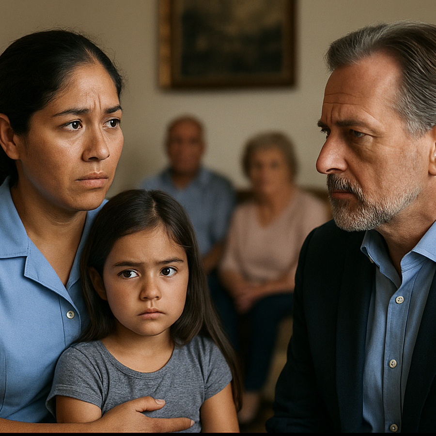 Una noche de tormenta, mientras Don Fernando viajaba por negocios, la pequeña Sofía enfermó. Clara, desesperada, la llevó al hospital bajo la lluvia. Pasó toda la noche a su lado, sin comer ni dormir. Cuando el hombre regresó, la encontró en la sala de urgencias, empapada, sosteniendo a la niña dormida en sus brazos.