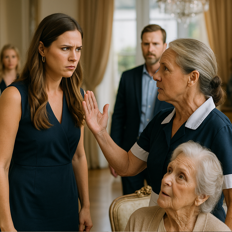 En el mundo de los millonarios, donde los secretos se ocultan detrás de paredes de mármol y candelabros de cristal, nadie imaginó que la persona más humilde de la mansión sería quien alzara la voz contra una de las figuras más poderosas de la familia. Una empleada doméstica, cansada de observar abusos en silencio, decidió enfrentar a la nuera cruel del magnate para proteger a la verdadera víctima: la anciana madre del millonario.