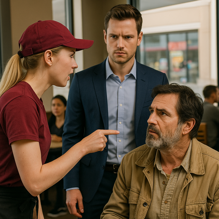 La humillación fue pública. El hombre bajó la mirada, asintió y se dio la vuelta. En ese momento, una voz fuerte interrumpió el silencio del local: