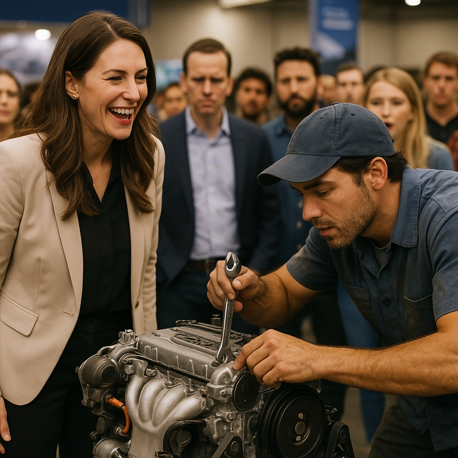 —Hoy no solo presento un motor —dijo con voz firme—, sino una idea: que el futuro no necesita petróleo, solo imaginación.