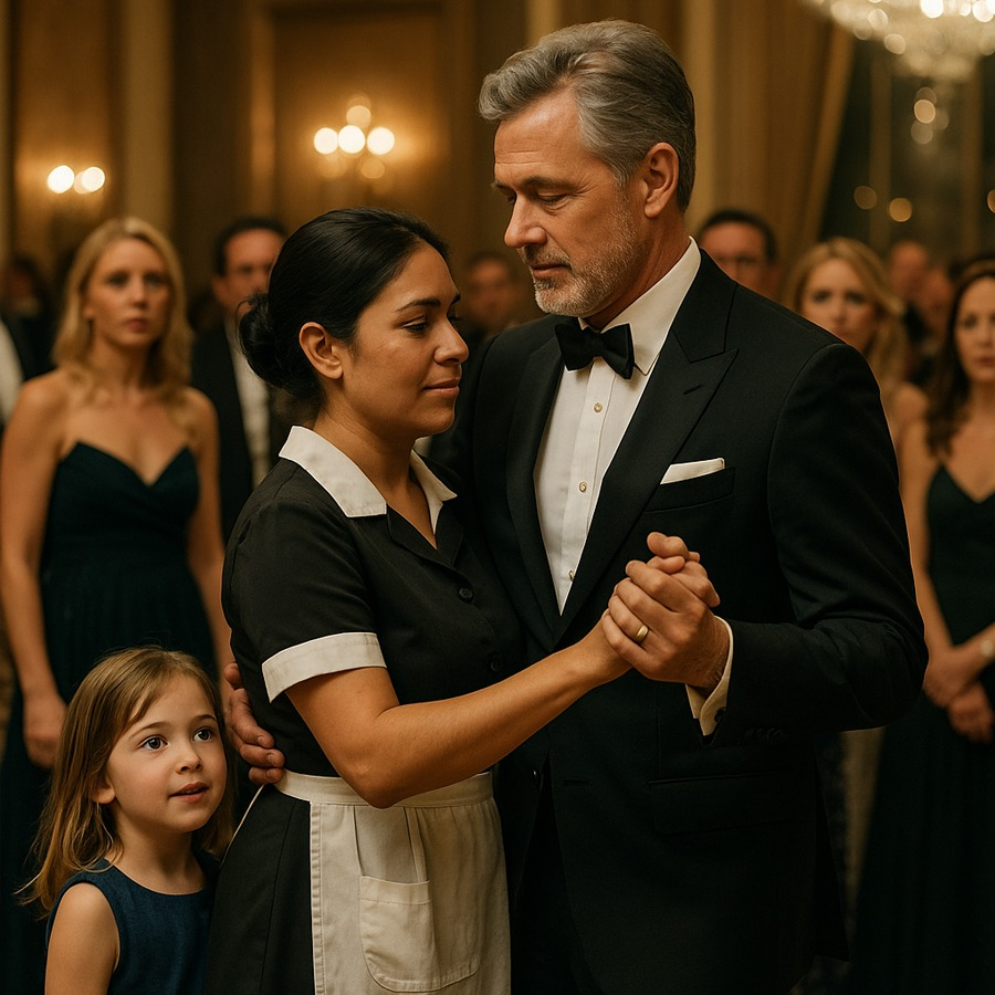 “En la gala más exclusiva del año, el magnate más codiciado rechazó bailar con las mujeres más poderosas de la ciudad. Nadie entendía por qué… hasta que una humilde empleada entró con su pequeña hija para limpiar el suelo. Entonces, el multimillonario se levantó, tomó su mano y la invitó a bailar. Lo que sucedió después cambió para siempre el significado de la elegancia.”