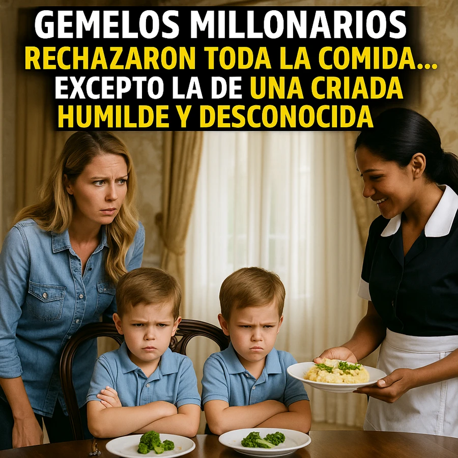 En la lujosa mansión de un magnate, dos gemelos conocidos por su rebeldía rechazaban toda la comida que se les servía. Nada funcionaba… hasta que una criada recién contratada les ofreció un plato sencillo que aceptaron sin dudar. Lo que parecía un simple capricho infantil escondía un misterio que, al revelarse, cambiaría para siempre la dinámica de la familia.