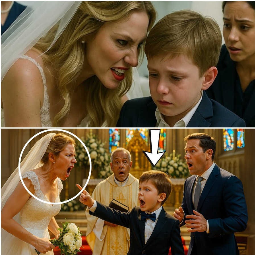 “En plena ceremonia, el hijo del multimillonario abrió la boca frente al altar y reveló unas palabras tan inesperadas, tan cargadas de misterio y tensión, que hicieron temblar a todos los invitados… y provocaron que su padre, sin un segundo de duda, cancelara la boda con una frialdad absoluta. Lo que ocurrió después dejó a toda la familia en shock y desató un secreto que nadie imaginaba.”