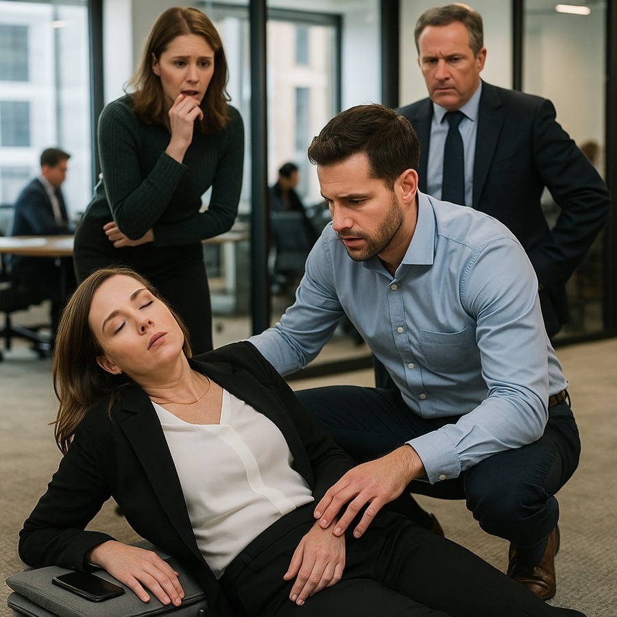 A mitad de la exposición, su voz titubeó. Una mano temblorosa buscó apoyo en la mesa. Los ejecutivos la observaron, confundidos.