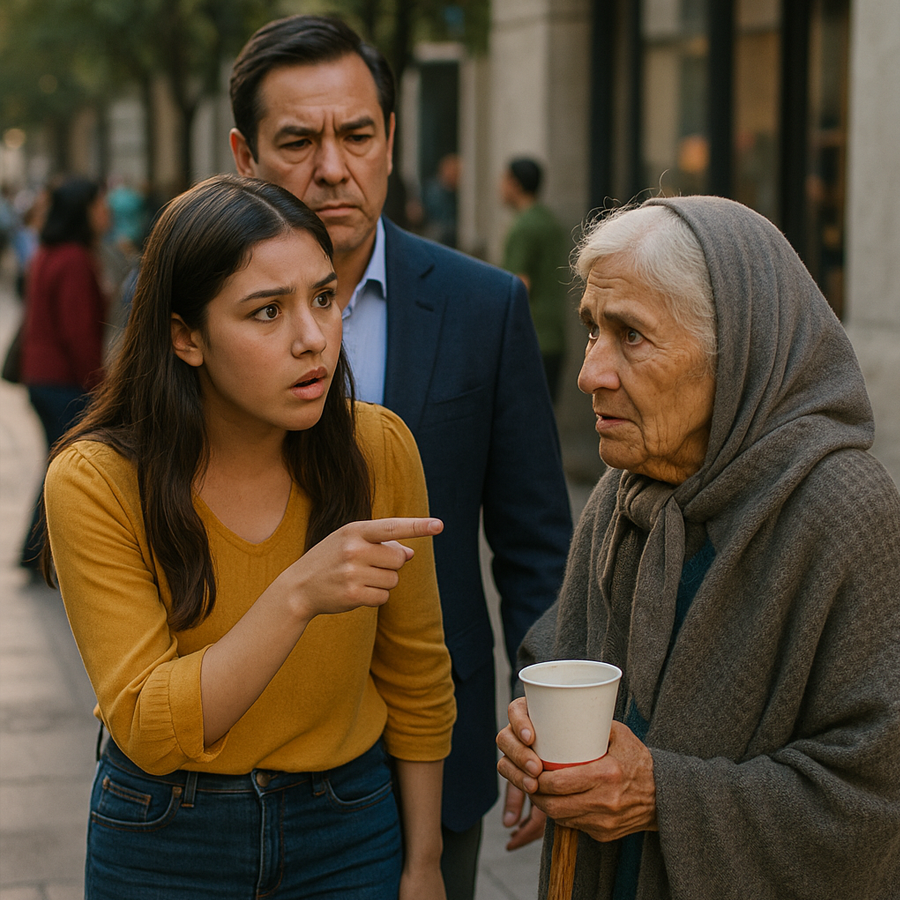 Mientras avanzaban por una calle concurrida, Valeria fijó la vista en una mujer sentada en la acera, cubierta con una manta gris y sosteniendo un pequeño vaso de papel. Su rostro, arrugado y cansado, parecía el de cualquier persona en situación de calle… excepto por un detalle: era idéntico al de su abuela materna, fallecida hacía más de cinco años.