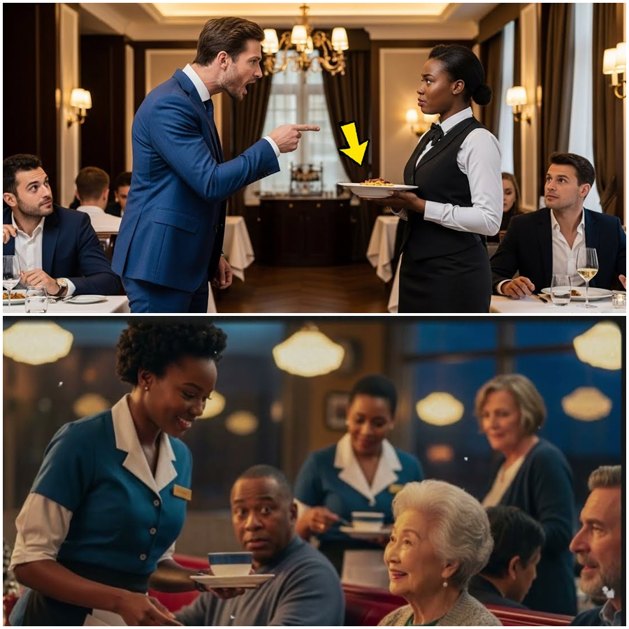 “¡ESCÁNDALO EN EL GRAN HOTEL DE CRISTAL! Un multimillonario pierde el control y humilla a una camarera durante una cena exclusiva, pero minutos después ocurre un giro inesperado que lo obliga a enfrentar su propia vergüenza y a revelar un secreto oculto que conmociona a todos los presentes”