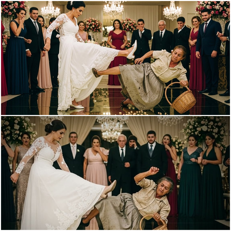 “¡ESCÁNDALO EN PLENA BODA! Una novia mimada empuja y humilla a una mujer humilde en la entrada de la iglesia sin imaginar que esa señora, despreciada frente a todos, era nada menos que la madre secreta del novio, a quien él ocultaba por vergüenza… hasta que una verdad estalló y transformó la ceremonia en una revelación inolvidable”