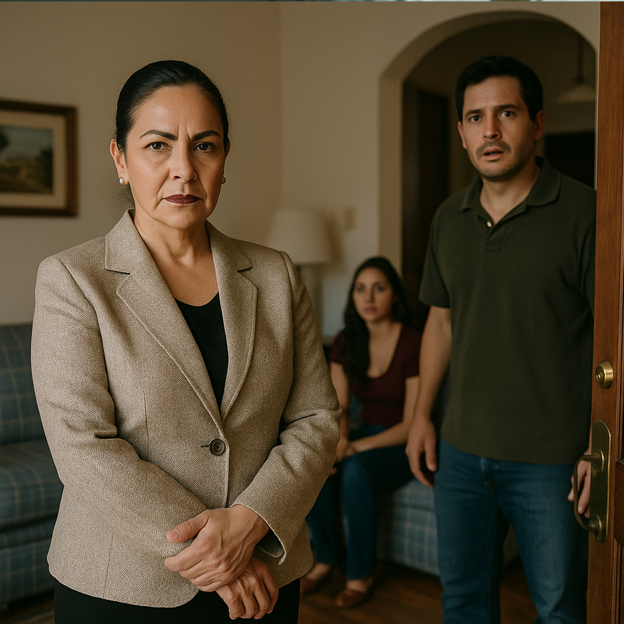 En medio del salón, bajo la luz tenue, una mujer de unos cincuenta años lo observaba con el rostro sereno pero firme. Llevaba un elegante traje beige y un bolso discreto. A su lado, la silla de ruedas vacía de Clara.
