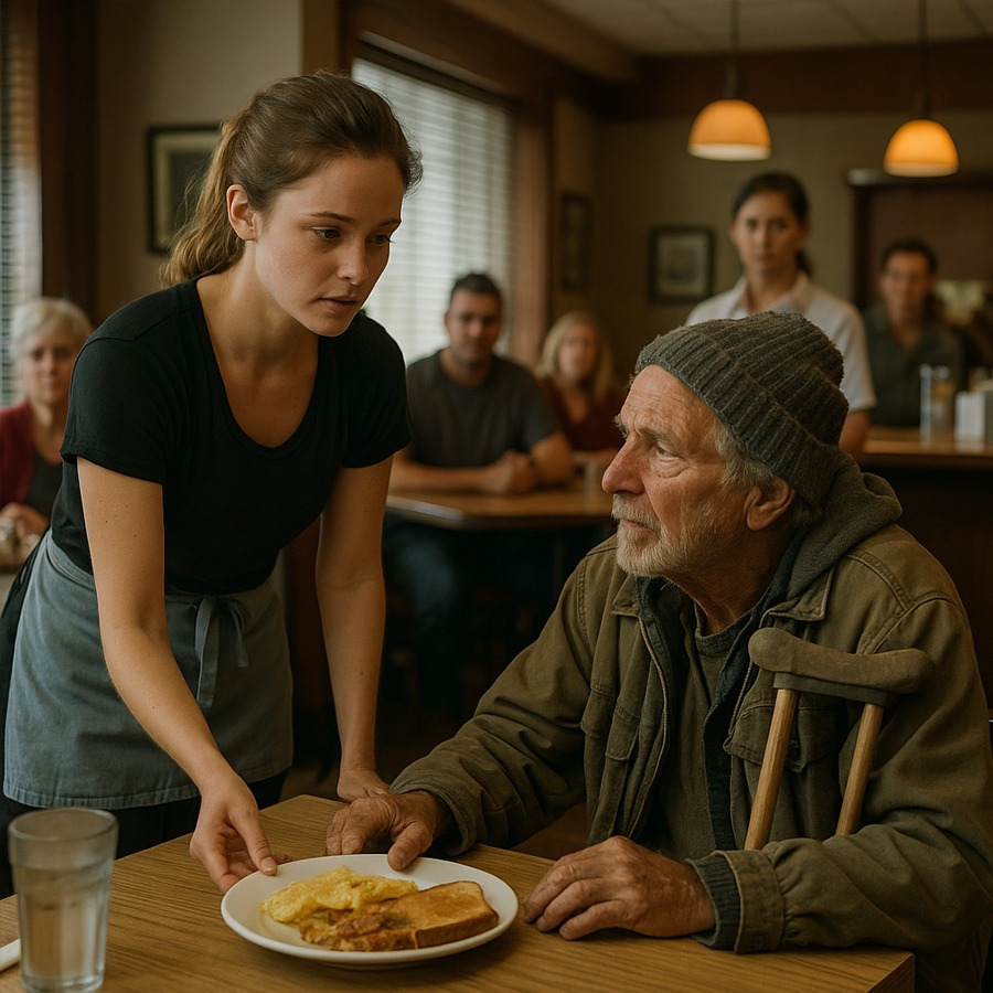 ¡HISTORIA IMPACTANTE! Una joven mesera alimenta a un mendigo discapacitado sin imaginar quién es en realidad. Días después, el hombre regresa al restaurante y todos descubren la verdad: ¡era un multimillonario oculto poniendo a prueba la bondad humana! Lo que ocurrió después cambió su vida para siempre y dejó a toda la ciudad con lágrimas en los ojos.