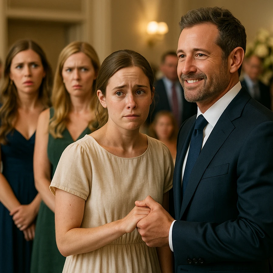 En medio de aquella ostentación, apareció una joven vestida de manera sencilla: un vestido beige sin adornos, zapatos básicos y sin joyas llamativas. Su porte era tímido, pero su sonrisa iluminaba el lugar. A pesar de ello, en cuestión de segundos se convirtió en blanco de miradas y comentarios maliciosos.