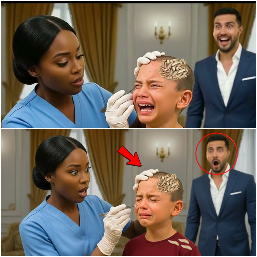 ¡IMPACTANTE REVELACIÓN EN UNA MANSIÓN MILLONARIA! En esta historia totalmente ficticia, el hijo del magnate vivía con un dolor inexplicable que ningún especialista lograba comprender… hasta que la niñera descubrió algo oculto y misterioso en su cabeza. Lo que ella retiró —y el secreto que reveló después— dejó al padre en absoluto shock y cambió para siempre la vida de la familia. ¡El giro final es sorprendente!