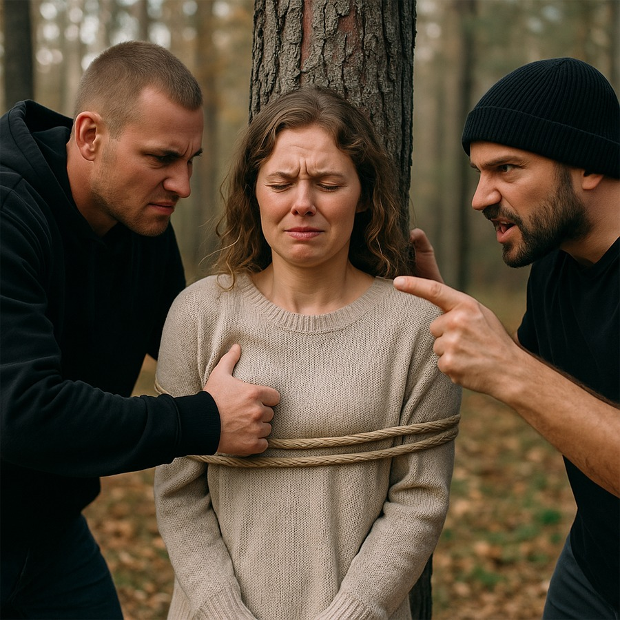 Elena retrocedió, pero no tuvo tiempo de escapar. La sujetaron con fuerza, la empujaron contra un árbol y ataron sus manos con brutalidad.