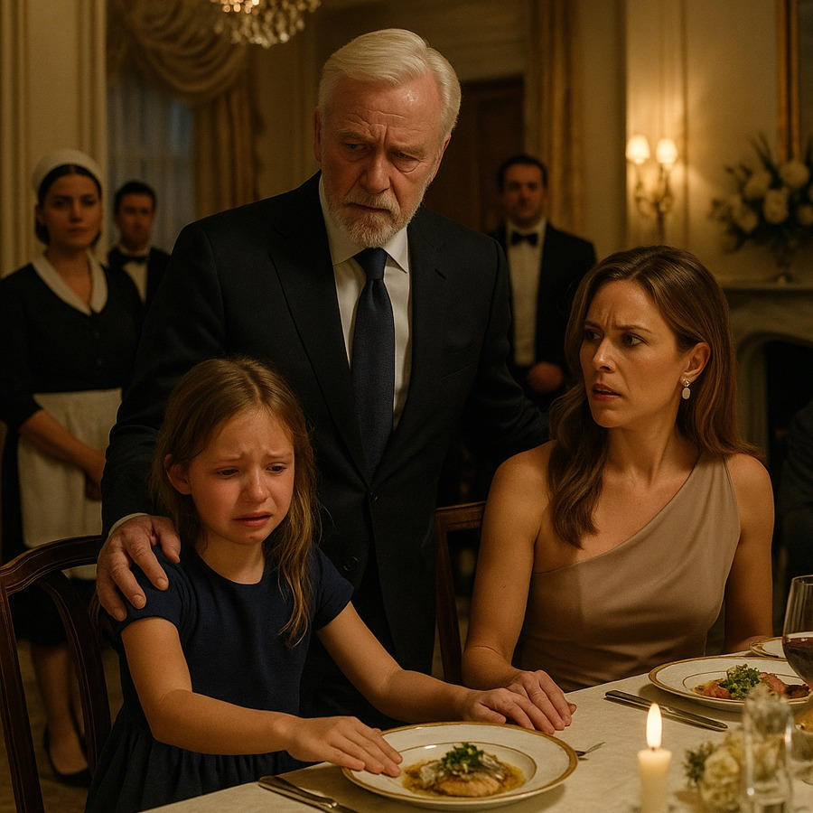 La cena parecía perfecta: copas de vino, risas forzadas y una nueva esposa radiante. Pero cuando la hija del millonario rompió a llorar, el ambiente se congeló. Nadie entendía por qué… hasta que él se levantó, miró fijamente a su mujer y dijo algo que cambió todo. Lo que reveló en esa mesa destruyó una mentira de años y dejó a todos sin aliento.