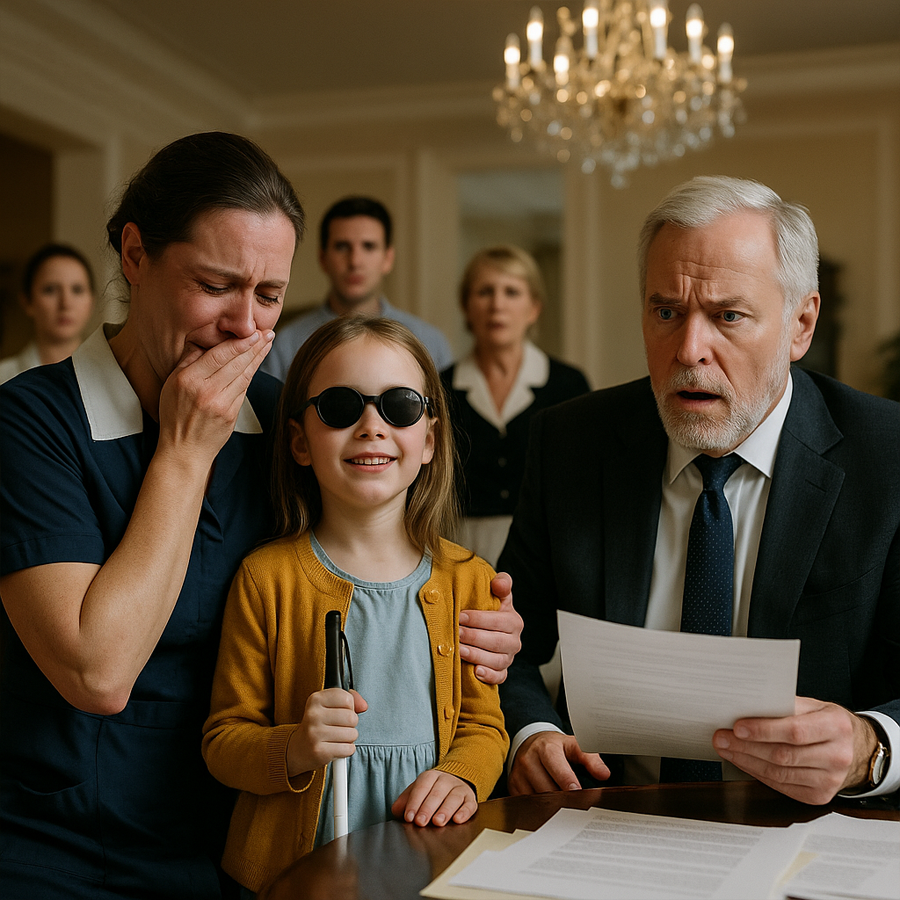 La criada trabajaba día y noche para sostener a su hija. Su salario era poco, pero alcanzaba para pan, medicinas y, sobre todo, para darle amor. La niña, de apenas ocho años, caminaba con la ayuda de un bastón. Su sonrisa iluminaba cualquier habitación, aunque jamás había visto el rostro de su madre.