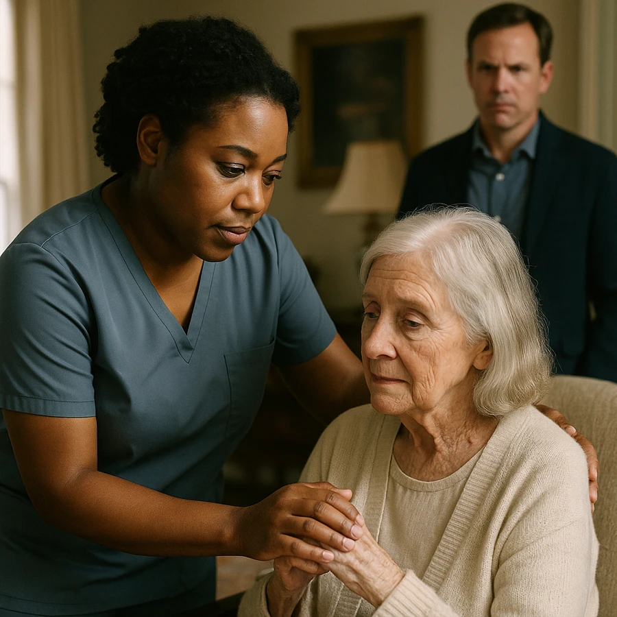 Evelyn no se limitaba a cuidar de Margaret. Le hablaba con un tono hipnótico, casi como si intentara manipularla. “Debes confiar en mí, solo en mí. Tu hijo no entiende lo que es mejor para ti”, decía mientras acariciaba suavemente su cabello. Margaret, confundida, asentía con lágrimas en los ojos. Era como si estuviera atrapada en una red invisible de control emocional.
