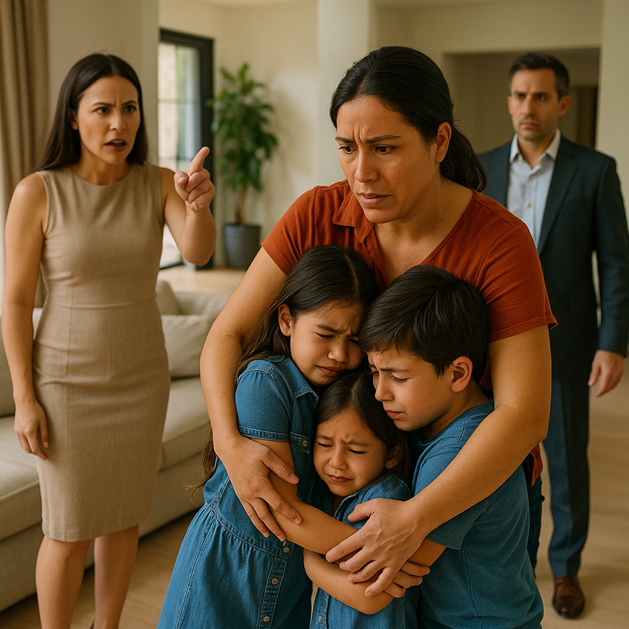 Apenas cruzó la puerta, escuchó un llanto desgarrador. Entró al salón y vio una escena que lo dejó sin aliento: Rebeca estaba gritando a los niños, con el rostro desfigurado por la ira, mientras María los protegía con su cuerpo.